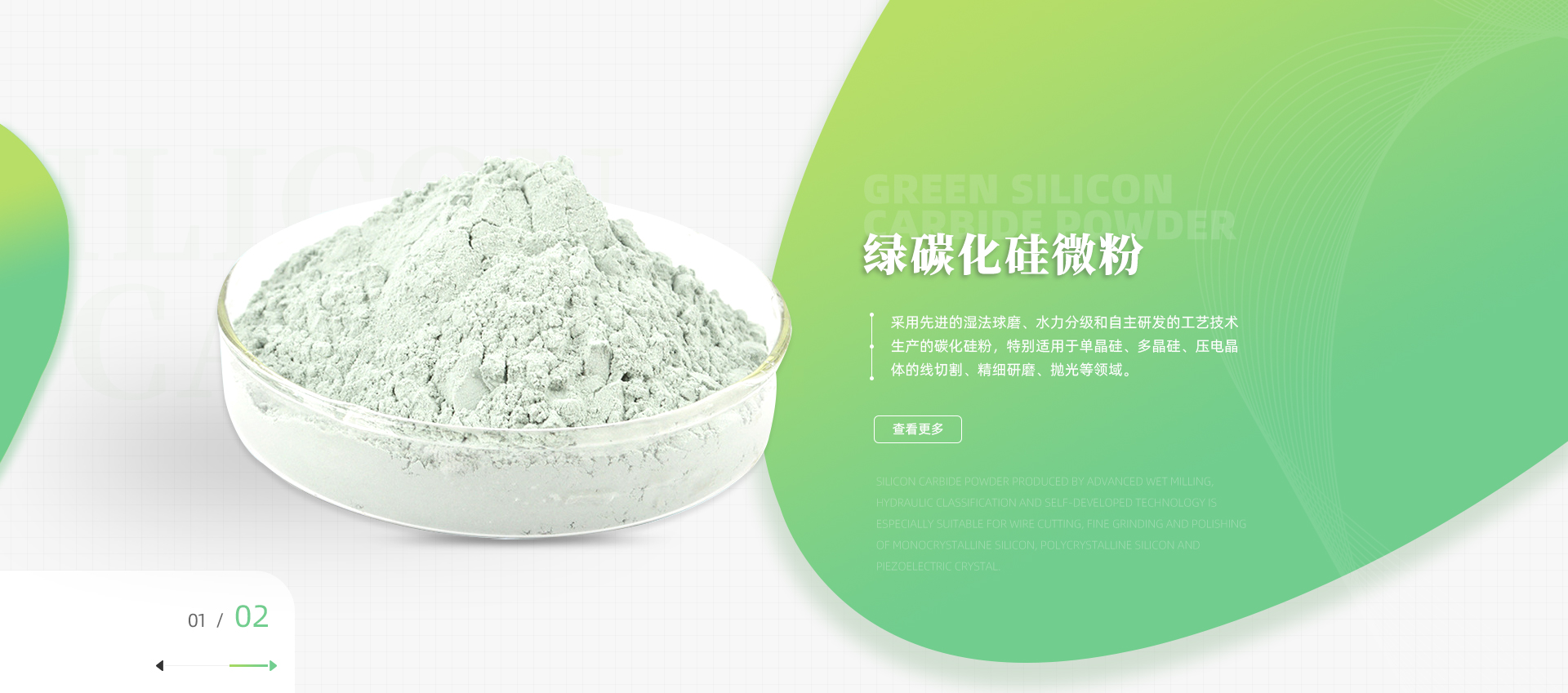 淄博淄川道新磨料磨具廠是一家專業生產綠碳化硅微粉,碳化硅超細粉,碳化硅研磨粉等產品的公司,采用先進的生產工藝自主研發的技術生產的碳化硅粉,特別適用于單晶硅、多晶硅、壓電晶體的線切割、精細研磨、拋光等領域。主要生產綠碳化硅微粉JIS#240-JIS#6000,以及高等耐火材料用超細粉。多年來公司以現代化的設備、先進的技術和優異的產品質量,滿... MORE